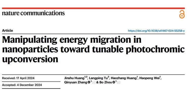 近日,华南理工大学发光材料与器件国家重点实验室周博教授团队在上转换发光颜色动力学调控上取得新进展,相关成果以“Manipulating energy migration in nanoparticles toward tunable photochromic upconversion”为题发表在国际**期刊Nat. Commun.上。