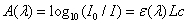 这里采用10的对数是化学届约定俗成的做法,其背后的实际物理意义是吸收材料的折射率的虚部引起的光子能量的损耗: