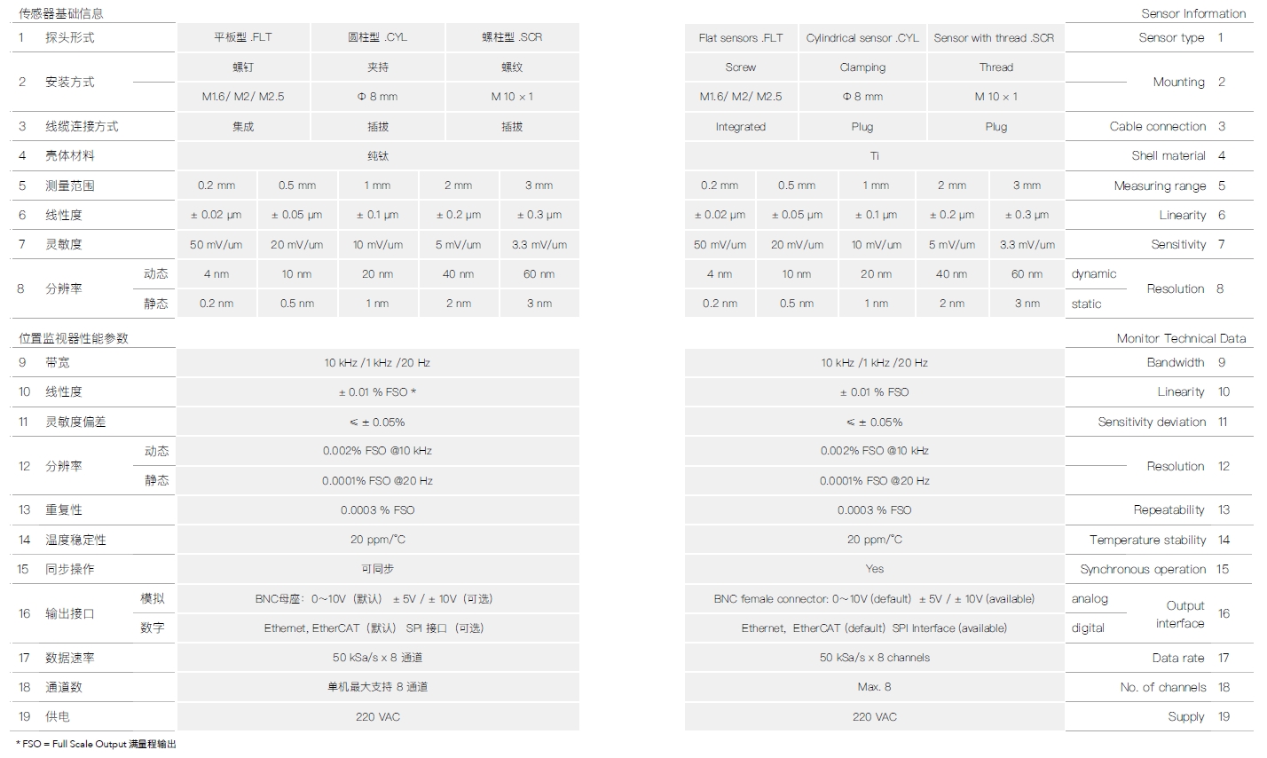 全量程线性度误差小于 0.01% FSO(激光干涉仪校准)