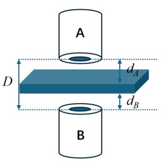 测量原理: 在被测导体两侧相对安装两只传感器( Sensor A 和 Sensor B),其端面之间的距离 D 固定。 厚度的计算公式为 Thickness= D - (dA + dB),其中 dA 和 dB 分别为两只传感器所测到的金属表面距离的精确读数。