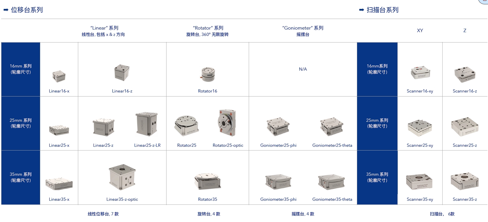 25 mm & 35 mm 系列低温压电位移台和扫描台 |