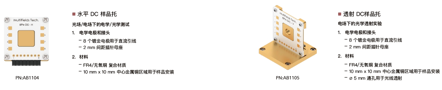 同样依据实验需求,选择兼容射频、直流或同轴的样品托。