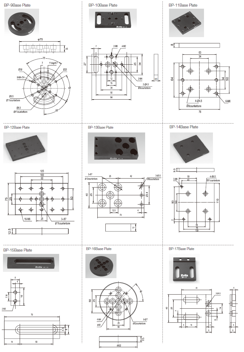 BP series base plate increases the flexibility of any optical setup by providing series of mounting holes and slots. Make it more easy to connect any optics on an optical table or breadboard.