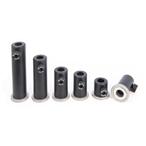 ZOLIX提供的12.7mm接杆支架包含了带底座式结构支架产品。这种光学接杆支架为安装连接接杆与面包板或光学平台使用。为了提高光学接杆在支架上的安装稳定性,我们在接杆安装贯穿孔上设计有叠加的圆弧凹槽,该结构使得接杆与支架形成稳定的双线接触方式。同时,我们考虑需要经常调整高度的接杆紧固可靠,又要对其结构外观进行保护,因此我们设计采用了内六角滚花头螺钉。该内六角滚花头螺钉为中空结构,设计有预载力弹簧带动POM头来紧固接杆,为此结构我们采用高强度的7075-T6航空铝,但仍需注意锁紧内六角滚花头螺钉的最大力矩不应超过3.2N·m。使用5mm内六角扳手加力紧固螺钉时,为防止力矩过大,建议采用L形内六角扳手,并握住L形短柄处操作。带底座接杆支架利用压块进行锁紧定位,在锁紧前,底座设计有环形磁铁,特别针对在光学平台等带有导磁台面的场景使用,可在压块锁紧前,对光学元件进行预定位。带底座接杆支架为贯穿孔设计,增大接杆的高度调节范围,进而实现最低光束高度位置。该系列产品提供了25mm~150mm长度规格范围可选,并且提供了5件套装的产品选择。