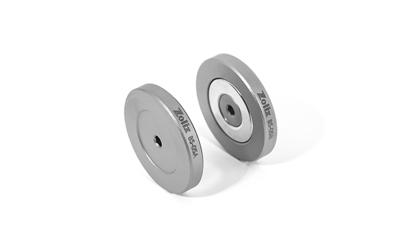 ZOLIX提供的12.7mm接杆支架底座包含了无磁与强磁两种产品。底座本体采用303不锈钢制造而成,顶部设计有M6螺柱,可与12.7mm无底座接杆支架安装连接,构成与带底座接杆支架同等功能。强磁底座在安装面嵌入了环形磁铁来提供吸附力。考虑到底座的安装可靠性,我们还在安装面设计了可用3mm内六角扳手加固的内六角孔结构。该系列产品可与12.7mm接杆支架压块配套使用,并且提供了5件套装的产品选择。