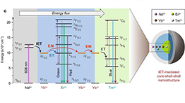 近日,华南理工大学发光材料与器件国家重点实验室周博教授团队提出了一种研究微观尺度能量迁移过程的新策略。通过构建界面能量传递IET(Interfacial Energy Transfer)调控的核壳纳米结构和能量输运过程设计,成功观测到敏化剂/激活剂共掺上转换体系的能量迁移特性,并通过定义特征参量(γEM)描述了能量迁移和能量传递的竞争。